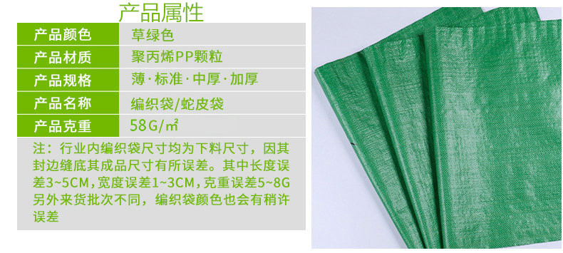 绿色编织袋批发 草绿色防汛垃圾袋饲料肥料 束口防水快递包装袋