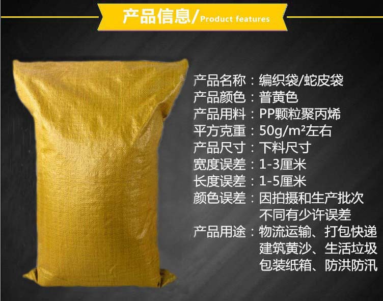 山东临沂批发编织袋 亮黄100*150cm 饲料沙土五金 物流氺泥包装袋